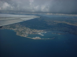uitzicht op onze boot vanaf vliegtuig